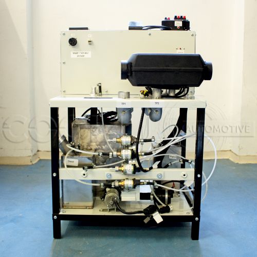 Tesztpad Autoterm kályhák tesztelésére. A tesztpad alkalmas a kályhák működésének ellenőrzésére, tesztelésére, a hibák kiszűrésére. Mind a vizes-, levegős, benzines és dízel üzemű kályhák tesztelhetők rajta. A készlet tartalmazza a szükséges kiegészítő tartozékokat (kábelek, csövek, vezérlő stb.)