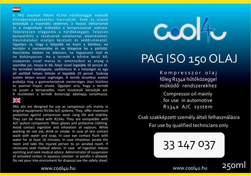 Kompresszor olaj PAG 150 250 ml